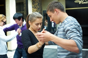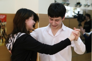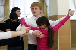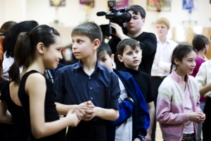Перед тем как заиграла музыка, ребят разбили на пары. Каждому участнику мастер-класса в партнеры достался профессиональный танцор из числа спортсменов школы Олимпийского резерва.