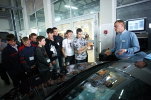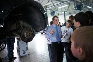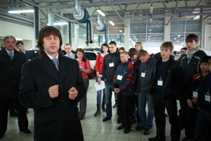 После приветствия руководителя, Дмитрий Полуянов, инженер по гарантии автосалона «Volkswagen» познакомил ребят с историей автомобиля «Volkswagen», презентовал профессию автомеханика, который выполняет операции по техническому обслуживанию и ремонту автомобилей, проводит контроль технического состояния с помощью диагностического оборудования.