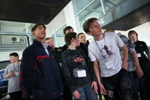 Мальчишки с детской непосредственностью интересовались о каждой мелочи, с интересом разглядывали капот, колеса, подъемники и, особенно, аппараты для проведения диагностики транспортных средств.